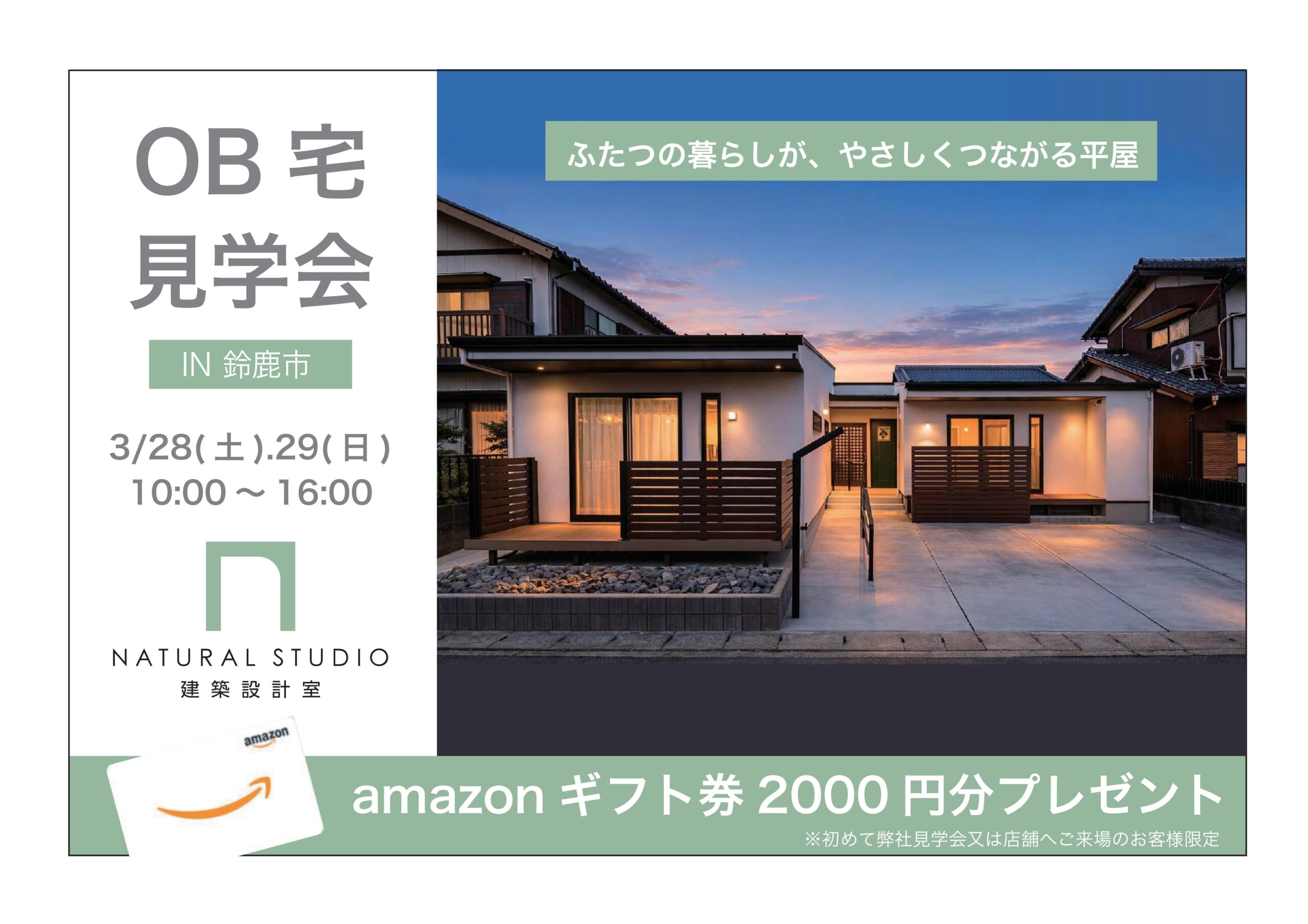 【OB宅見学会】ふたつの暮らしが、やさしくつながる平屋。 3/28(土)~29(日)