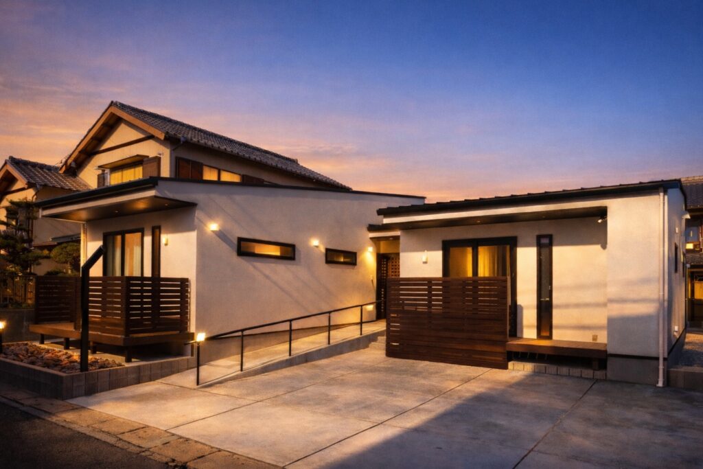 そんな“ちょうどいい距離感”をかたちにした、二世帯平屋の住まいです。
