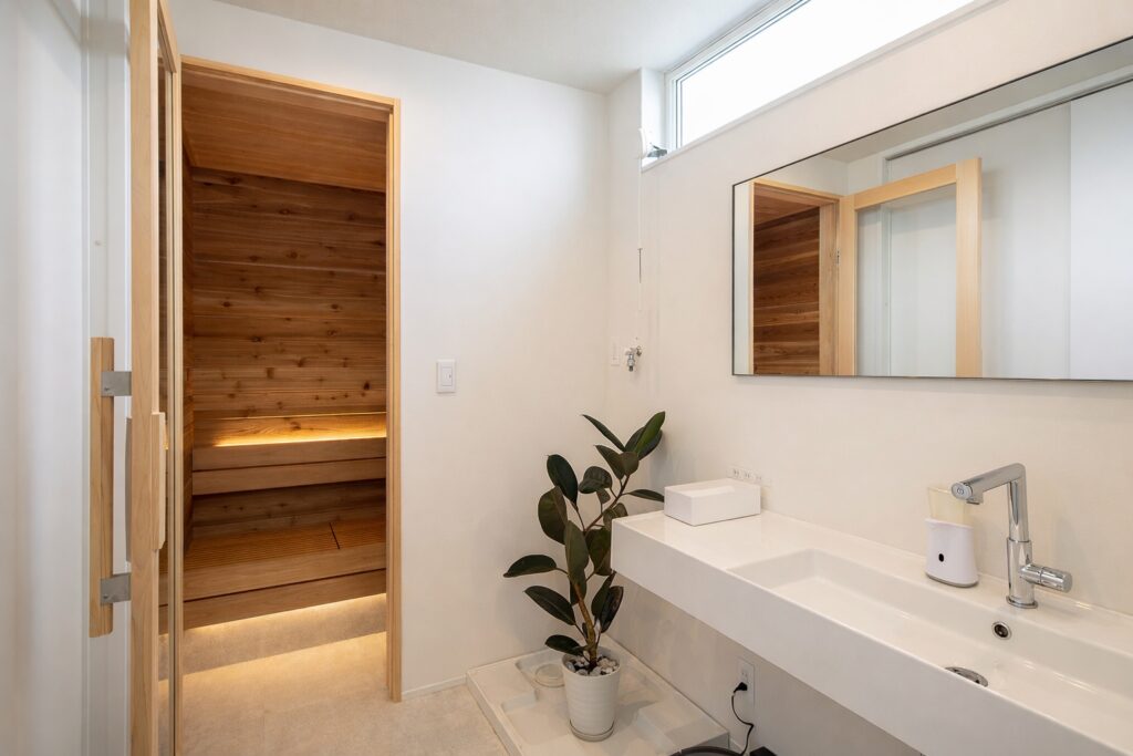 洗面からそのまま入れる、暮らしに組み込まれたサウナ動線。